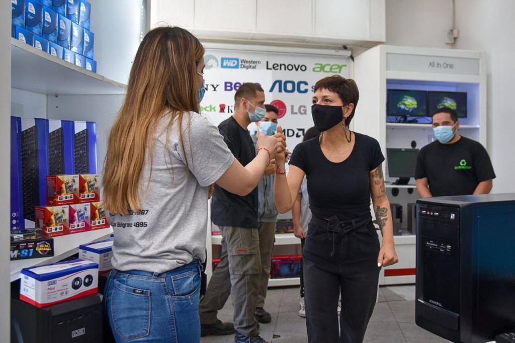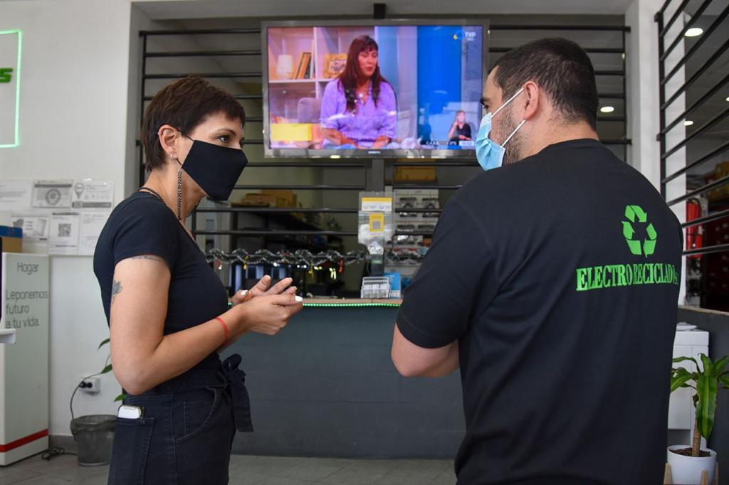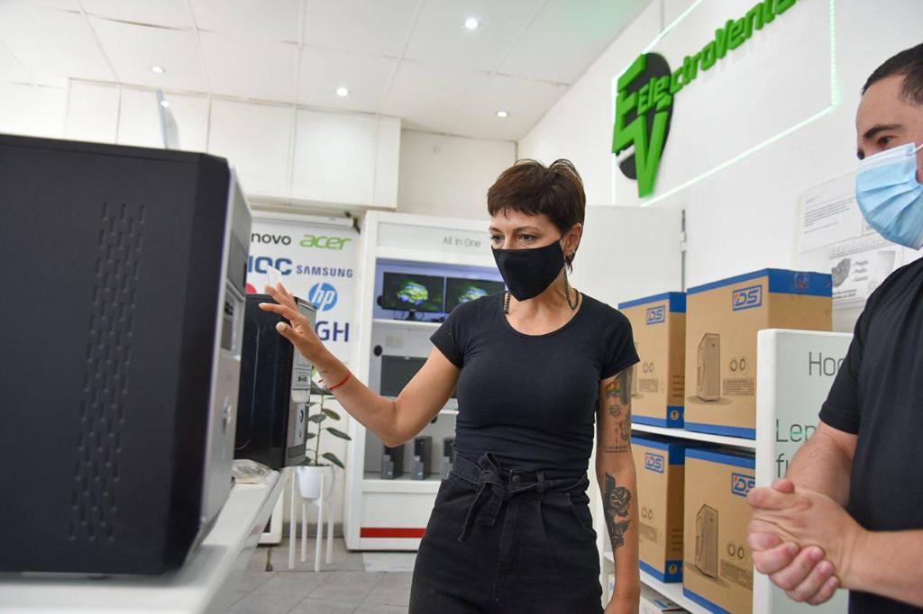 Mayra Mendoza visitó el jueves el comercio Electro Venta, propiedad de Manuel González, en Camino General Belgrano al 4800, en Villa La Florida, en el que se venden artículos electrónicos que han sido restaurados en la planta Electro Reciclado, empresa que mantiene una política de sustentabilidad y economía circular en la que se realiza el reciclado de RAEE (Residuos de Aparatos Eléctricos y Electrónicos), en la que separan los materiales que se utilizan y los que llevan a disposición final de manera sostenible.