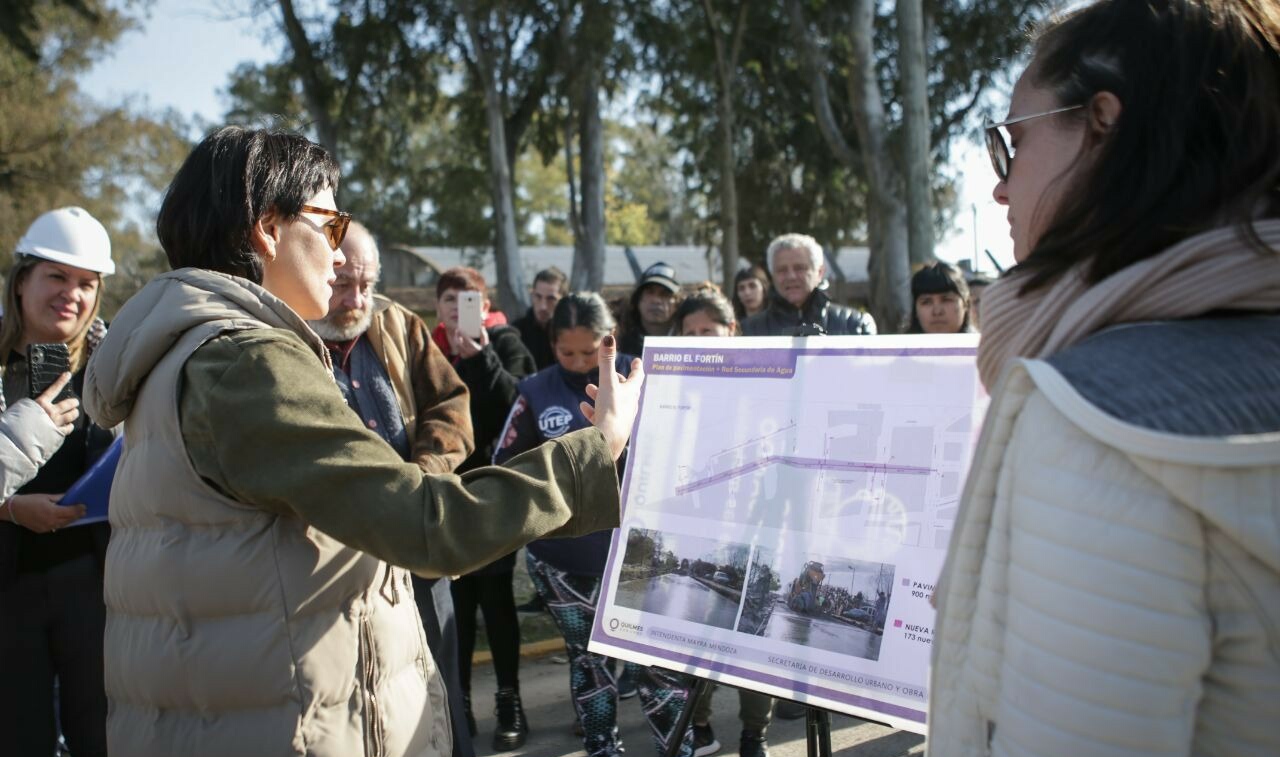 La intendente de Quilmes desplegó este viernes una intensa agenda de gestión en La Ribera, donde visitó la Sociedad de Fomento Villa Luján, recorrió la obra de pavimento en la avenida Italia, supervisó el avance de la construcción del Nuevo Complejo Socio Ambiental Ecoparque Quilmes, y charló con vecinos y vecinas en el Centro Tradicionalista «El Fortín».