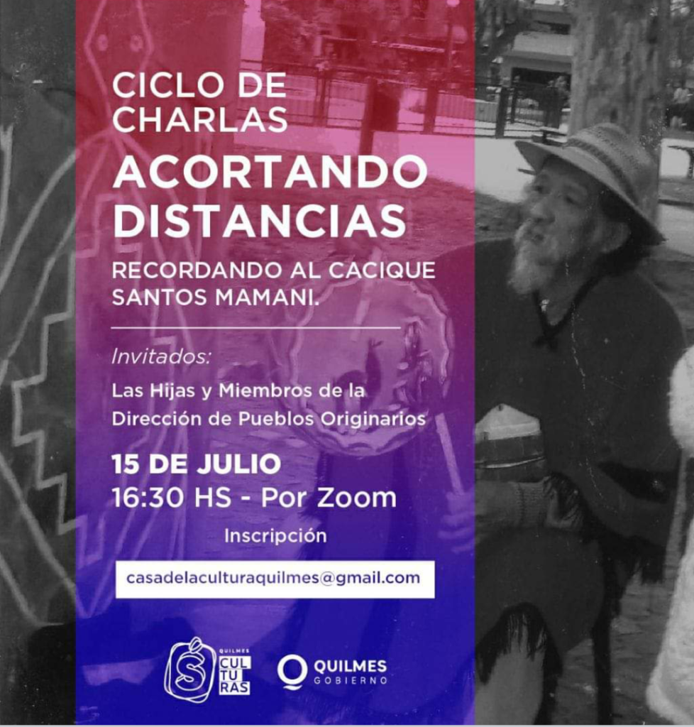 📣 Este jueves 15 de julio a las 16:30 habrá un nuevo encuentro de Acortando Distancias, donde se recordará al Cacique Santos Mamani junto a las hijas y miembros de la Dirección de Pueblos Originarios.