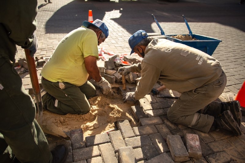 El intertrabado de los bloques que componen la vereda de la principal arteria comercial de Quilmes llevaba años sin el mantenimiento apropiado y desde hace varios días, las cuadrillas municipales trabajan para que sea más seguro para los vecinos y vecinas que transitan la peatonal.