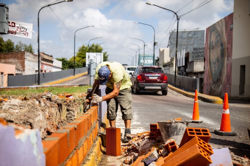 En Quilmes Centro, se procedió a la reparación de la isla distribuidora de tránsito en la subida Este del puente 14 de Agosto, sobre Yrigoyen y Humberto Primo, que el fin de semana quedó destruida luego de que fuera impactada por un vehículo.