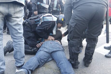 Los trabajadores del INTI habían anunciado sus acciones de protesta con un paro de 48 horas y cortes de tráfico, pero fueron confrontados de nuevo esta mañana con más despidos confirmados y violencia policial. «Si el INTI desaparece, desaparece la industria nacional», fue uno de los lemas destacados durante la manifestación.