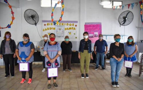 La jefa comunal estuvo acompañada por el secretario de Educación, Culturas y Deportes, Mario Lozano; la subsecretaría de Política Integral por los Derechos de los Niños, Niñas y comunal, Carolina Atencio; su par de Educación, Gustavo Lappano, y la concejala Nair Abad; mientras que por parte del Jardín «Pampa» estuvo Noelia Iris Mira; en representación de «Ponderosa» fue Irma Saucedio; por «Obrador» participó María Antonia Figueroa y también la presidenta de las tres instituciones, Claudia Figueroa.