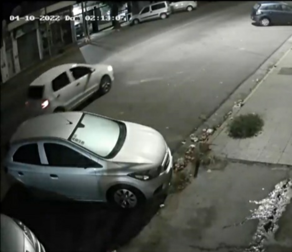 En las imágenes se ve la acción de los delincuentes sobre el auto estacionado a 45°.