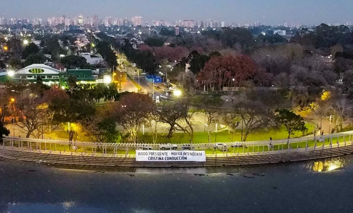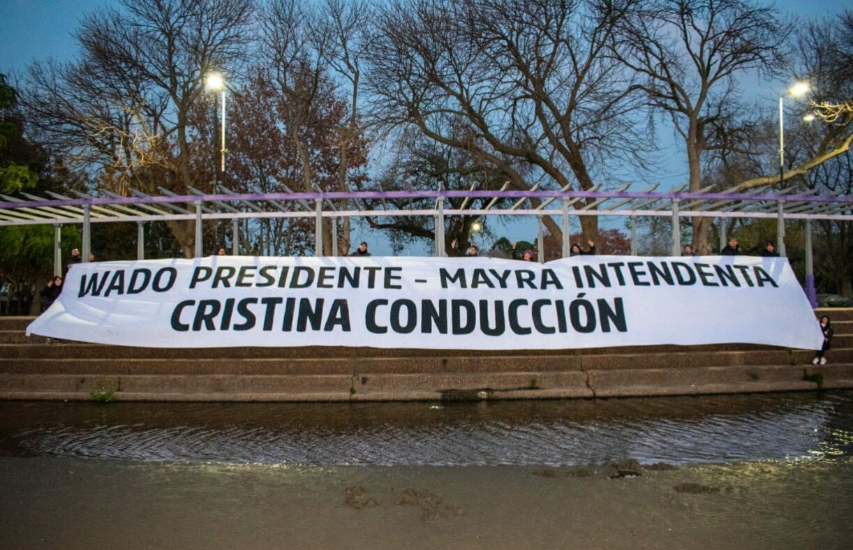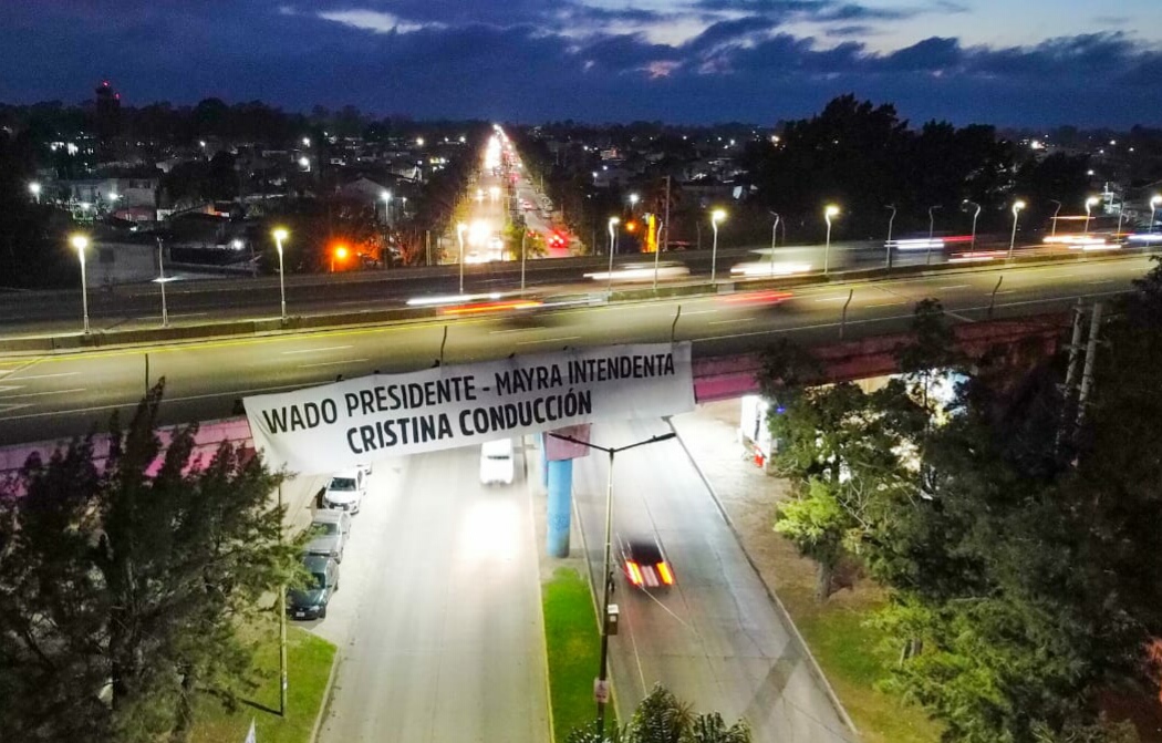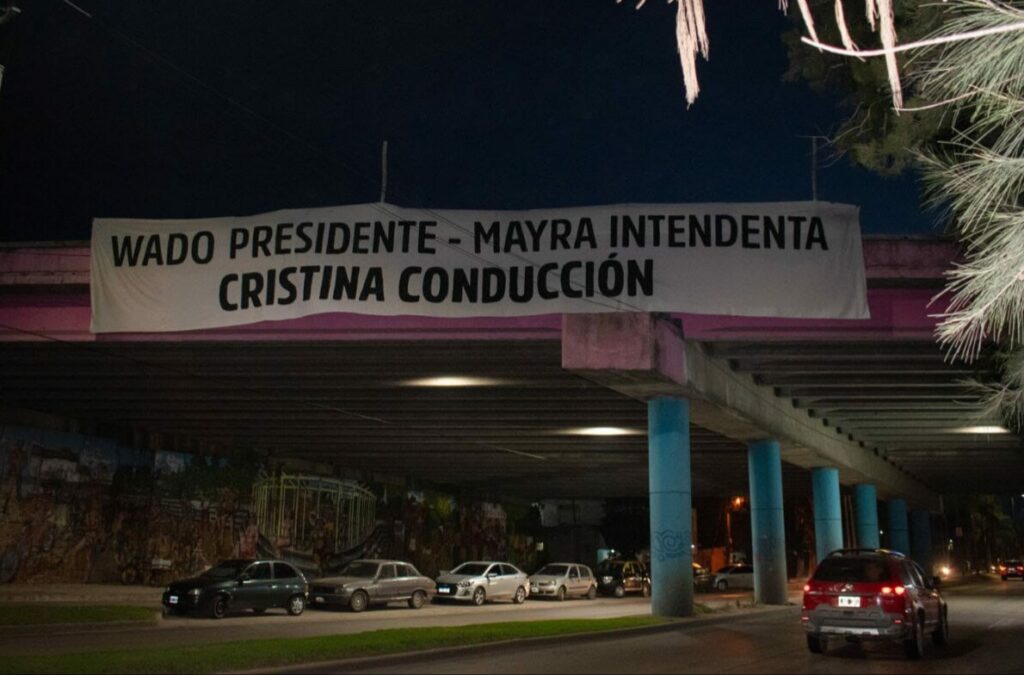 Colgaron carteles con la leyenda: «Wado Presidente – Mayra Intendenta – Cristina Conducción» en diferentes partes del Municipio.