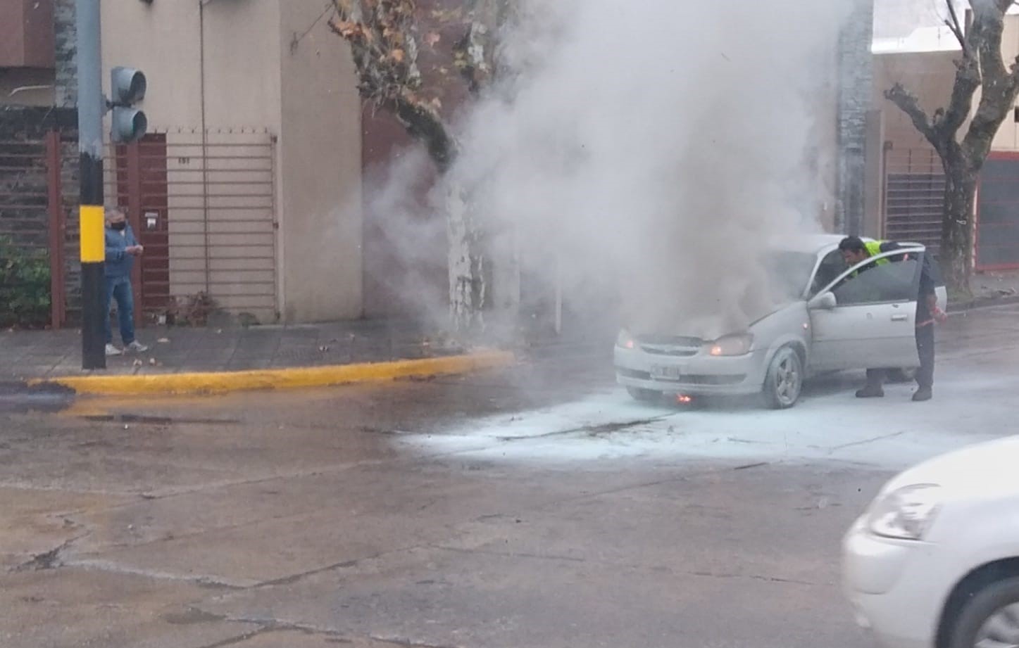 Luego de una fuerte explosión que alertó a los vecinos comenzó a incendiarse un auto detenido en el semáforo. Dentro, dos mujeres, que no se percataron de lo que pasaba hasta que fueron advertidas por los transeúntes que ayudaron a descender a una de ellas, de avanzada edad.