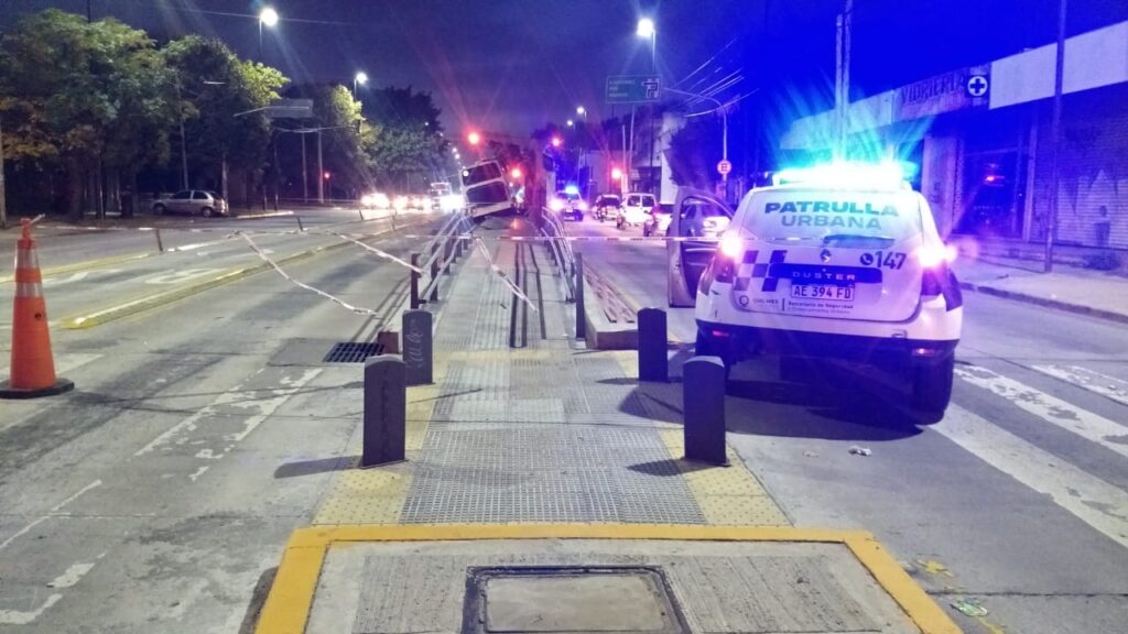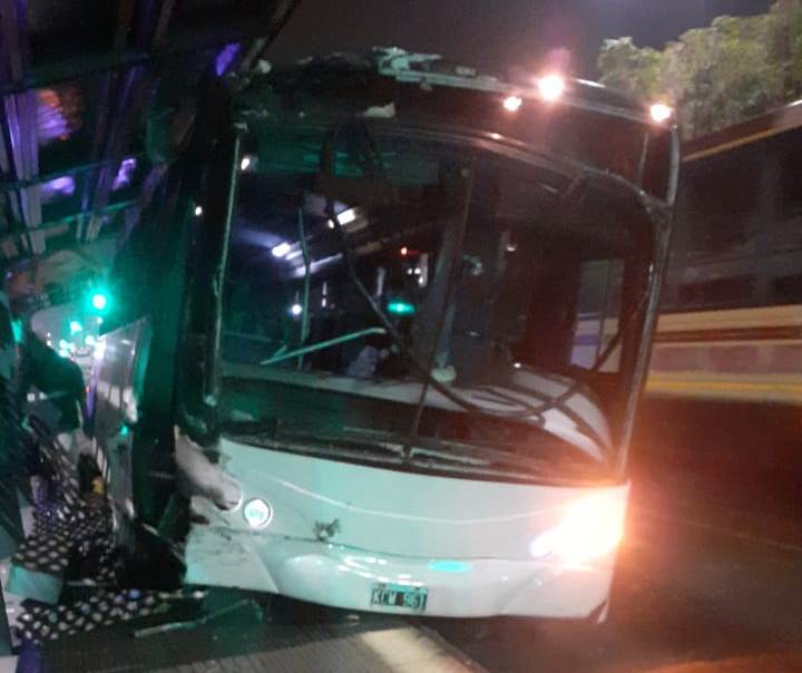 El colectivo quedó incrustado entre los separadores de hierros. No había nadie ahí en ese momento.