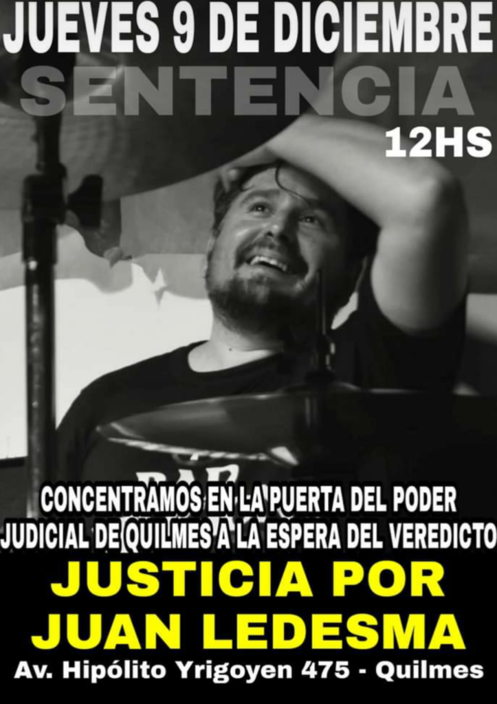 El 4 de febrero de 2018 a las 5 de la mañana. El baterista Juan Ledesma salía del bar Don Pedro de Quilmes Oeste tras tocar con la banda de punk Superuva. Un integrante del grupo soporte esperaba en la puerta para pedirles una foto a él y al cantante Daniel “Checha” Koscianiewicz. Otras cinco personas, que durante todo el recital les habían arrojado vasos, también los estaban esperando.