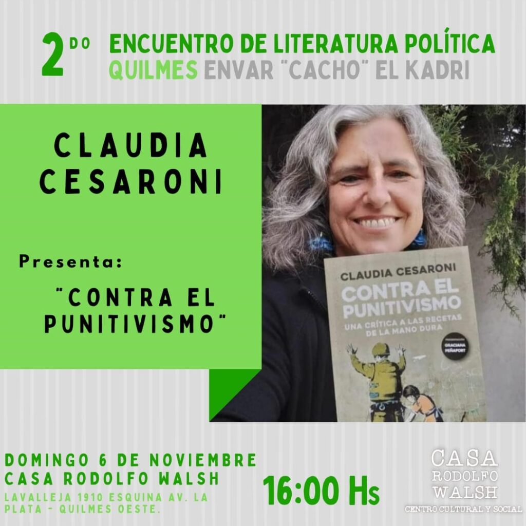 (CIQ) En el Centro Cultural y Social Casa Rodolfo Walsh tendrá lugar la tercera jornada del 2° Encuentro de Literatura Política Envar Cacho El Kadri, declarado de interés municipal por el Concejo Deliberante.