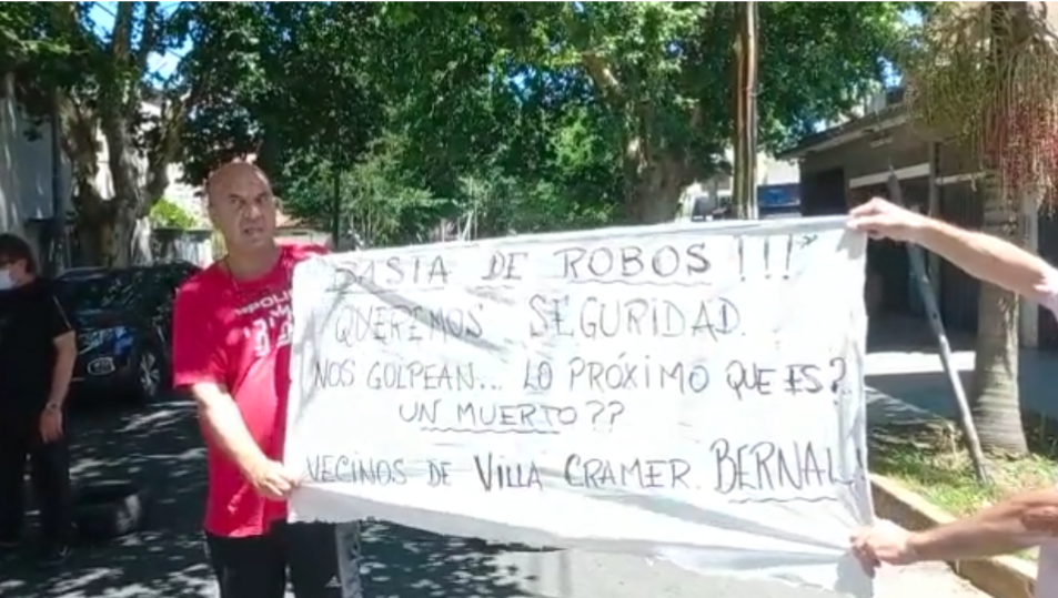 En Villa Cramer, Bernal, cansados de tantos hechos delictivos, vecinos realizaron esta mañana un corte de calles en Cramer y Victoria para hacer visibles sus reclamos.