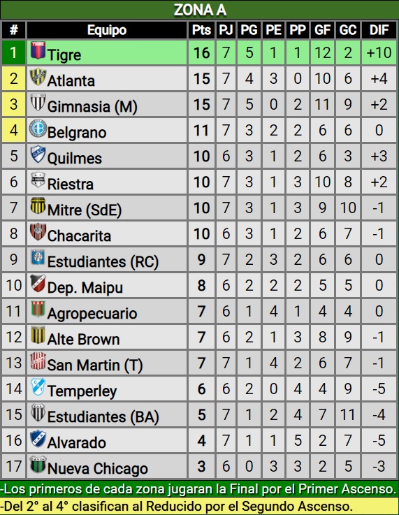 Los resultados de los líderes permitieron achicar la tabla. Agropecuario y Tigre igualaron sin goles y, en Mendoza, Atlanta se mostró como el gran ganador de la fecha, se puso a uno del Matador en conjunto con su vencido.
