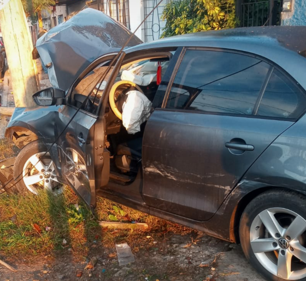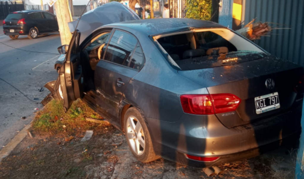 No se conocen las causas del violento choque que se produjo este domingo por la mañana en República de Francia y Elustondo. El auto subió a la vereda, a gran velocidad, dio contra un árbol y un poste de luz sin consecuencias humanas.