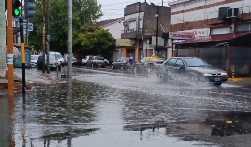 Luego de un chaparrón intenso pero poco duradero, así estaba la circulación, esta tarde de sábado, en Vicente López y Lamadrid. Sumideros tapados mediante, vecinos…