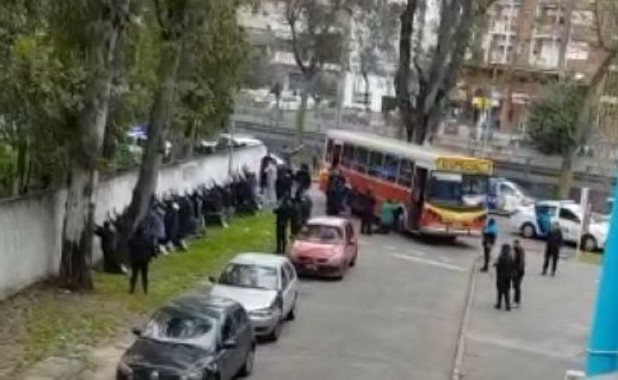 Uno no identificado de la facción disidente habría comenzado los disparos. La Policía incautó un revólver que fue descartado por quienes iban en el micro, banderas, palos y cuchillos.