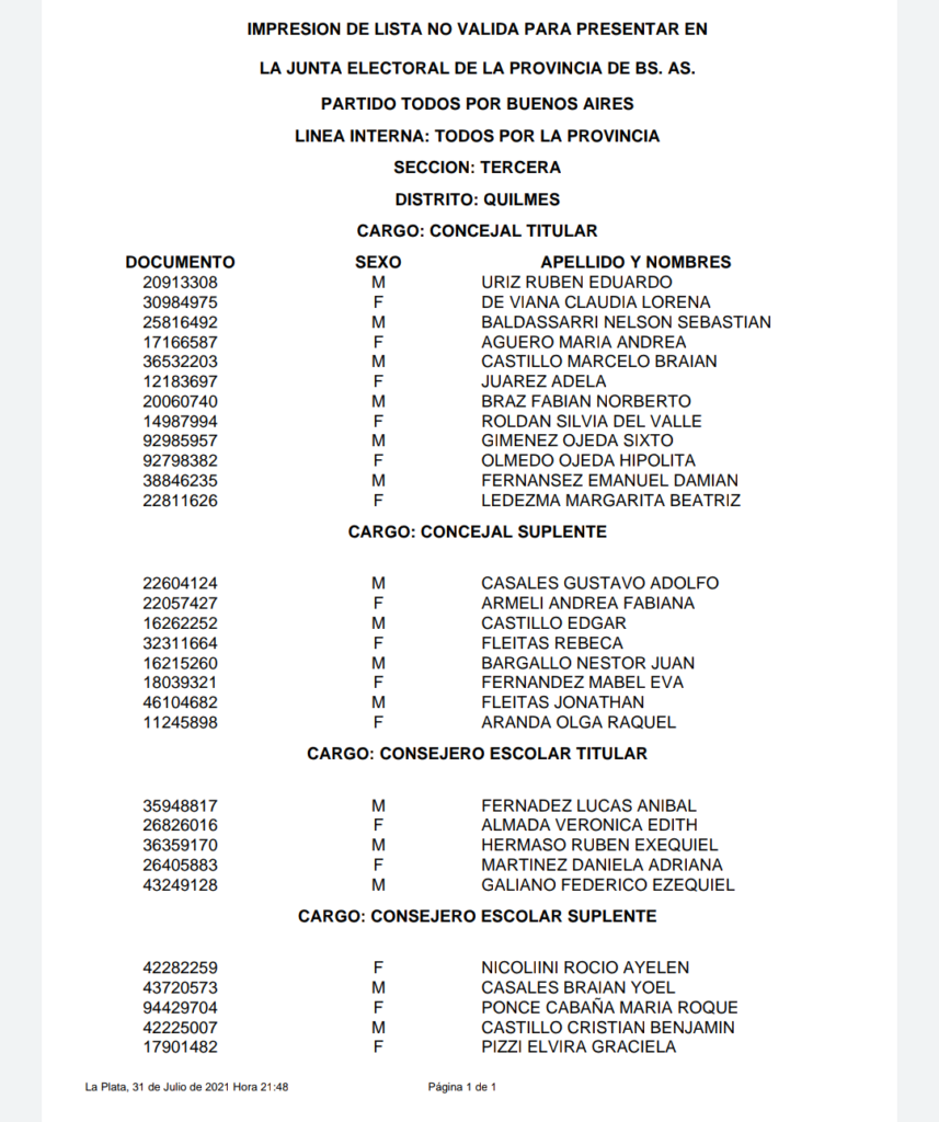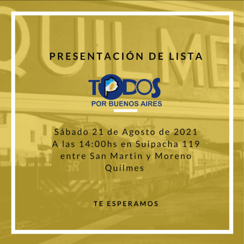 Todos por Buenos Aires presenta su lista en Quilmes. Será este sábado 21 a las 14 horas, en la calle Suipacha 119, entre San Martín y Moreno.