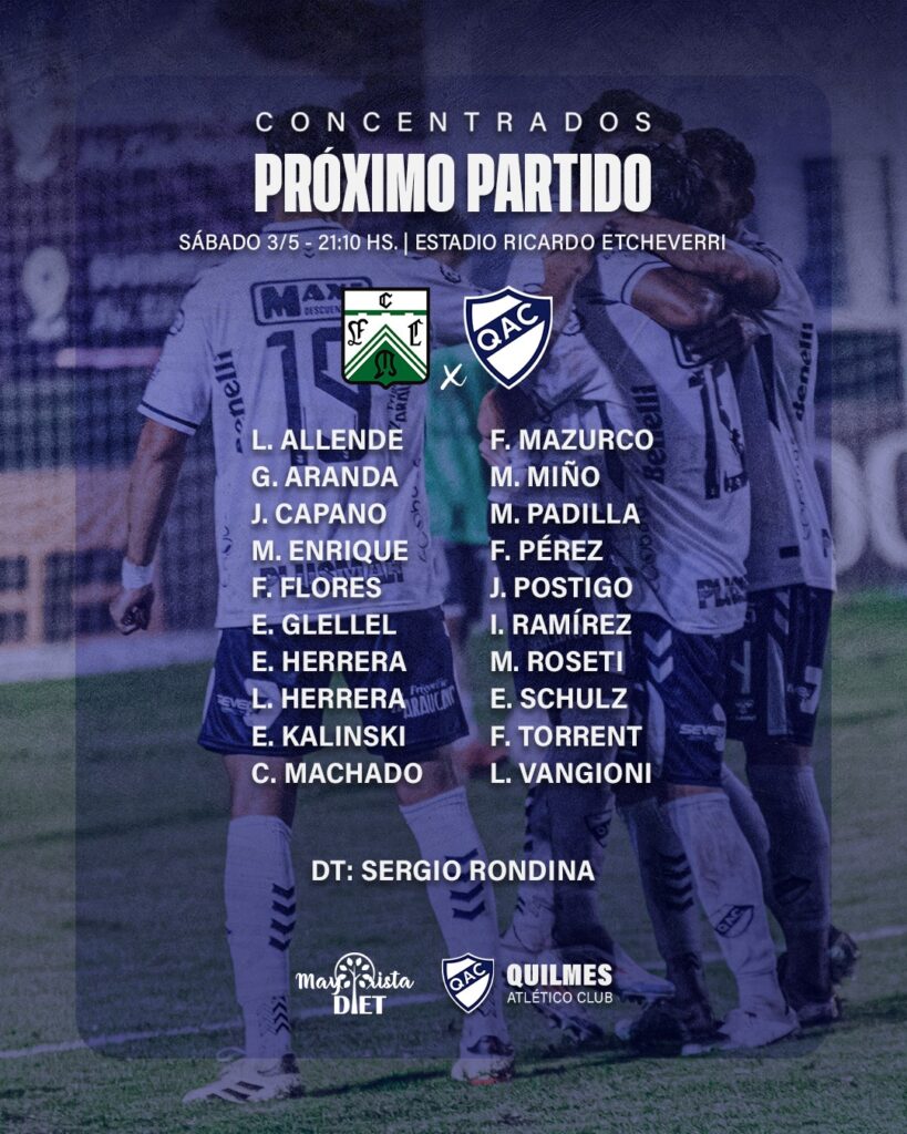 Tras el cotejo frente a los tricolores, quedó afuera Óscar Belinetz, lesionado en ese primer tiempo. Ergo, los cambios para el once inicial son obligados. Para esta ocasión, Rondina citó a los siguientes profesionales: