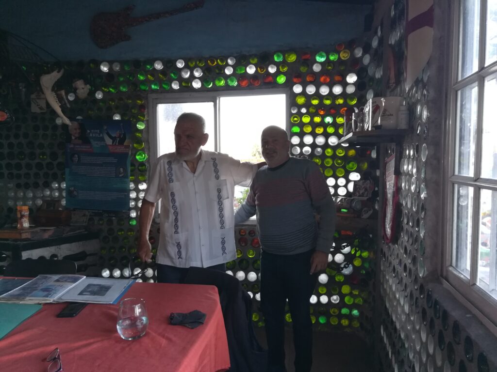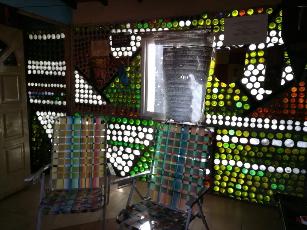No es casual que surja este último término, porque de la larga charla, salió el nombre de Tito Ingenieri, otro reciclador y escultor genial, de quien Carlos toma la idea de construir una parte de su casa con botellas de vidrio, como la de Tito en la ribera.