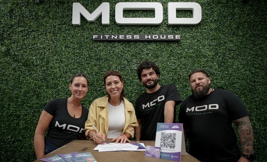 La Jefa comunal visitó el gimnasio MOD Fitness House, en Alsina 309, en el centro de la ciudad, donde firmó junto a sus dueños la adhesión del local al convenio del programa de beneficios de la tarjeta Somos Quilmes.