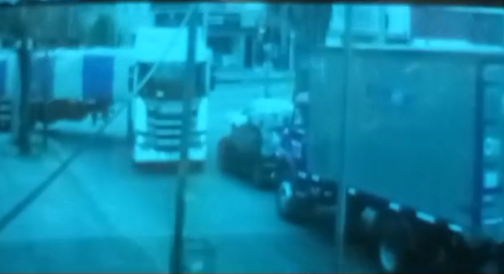 Atentos a la mano hacia el río: un coche que estaba parado recibió la peor parte. El camión más chico, de la misma mano, le rompió parte del costado de la trompa y se fue.