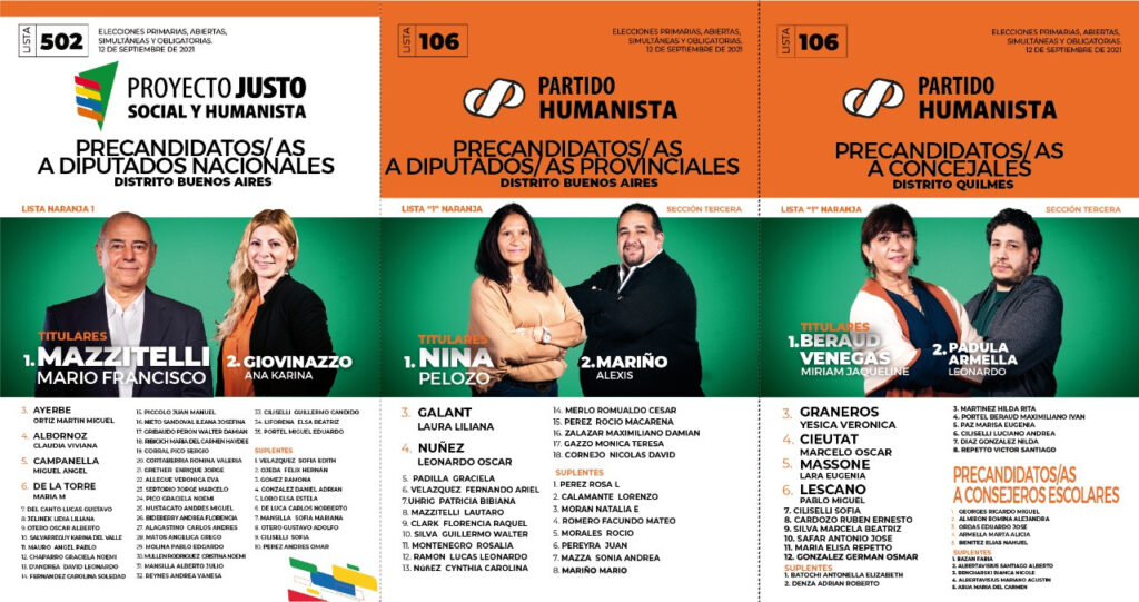 Encabeza la tira para diputados nacionales Mario Mazzitelli, vecino del oeste del conurbano, con militancia en el Partido Socialista Auténtico (PSA), desde donde acompañara a Pino Solanas en algunas de sus epopeyas electorales. Le acompaña Ana Karina Giovinazzo, del PH.