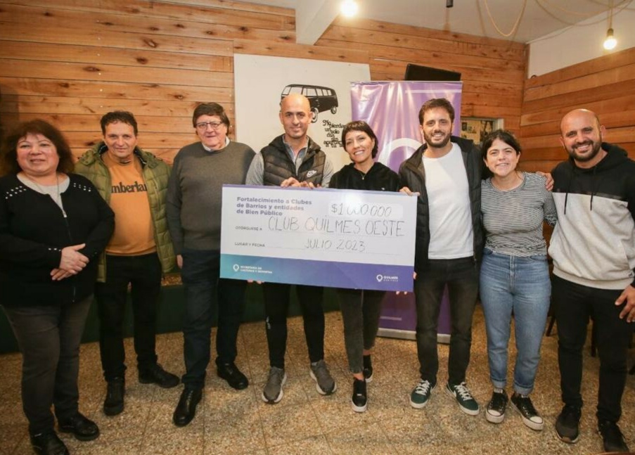 El Municipio entregó este martes un subsidio de 1 millón de pesos al Club Social y Deportivo Quilmes Oeste, en el marco del Programa de Fortalecimiento a Clubes de Barrio y Entidades de Bien Público, una política pública municipal que tiene como objetivo colaborar con las instituciones locales en la ejecución de diferentes obras.