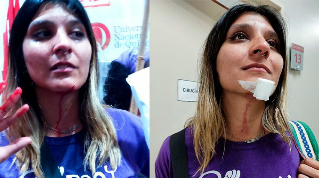 Una joven representante de la organización Pan y Rosas fue herida en el rostro.
