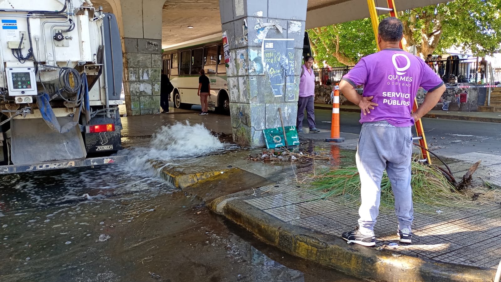Hacía mucho tiempo que algunos lectores de este CIQ habían comentado acerca del problema que genera el tipo de árboles que rodean a la estación céntrica, cuyas esporas y hojas tapan los desagües del techo de la dársena de micros. Este viernes, el municipio se avocó a su desobstrucción.