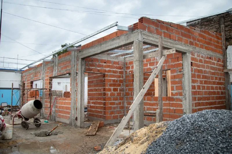 Continúan las obras que en la Escuela Secundaria 16 Fortaleza de los Kilmes, en avenida Calchaquí 840, Quilmes Oeste, que incluyen la construcción de una sala maternal con cocina, baño completo para adultos, baño para alumnos y una oficina para el personal directivo. Se encuentra en proceso de ejecución la estructura metálica de la cubierta.
