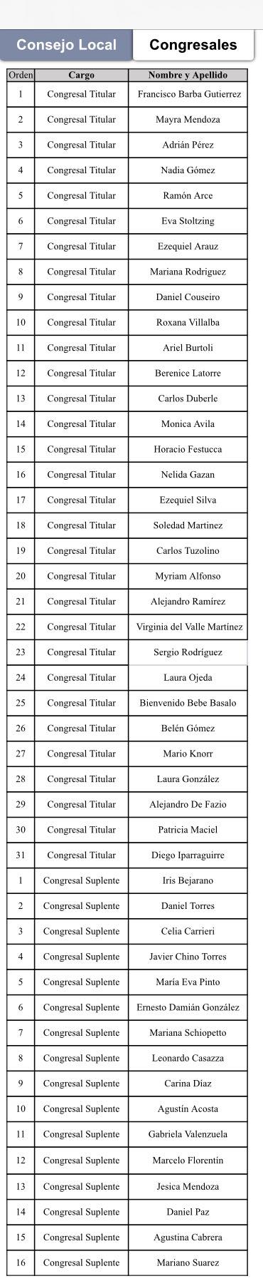 - Secretaria de Técnicos Profesionales: Mariana Confalonieri.