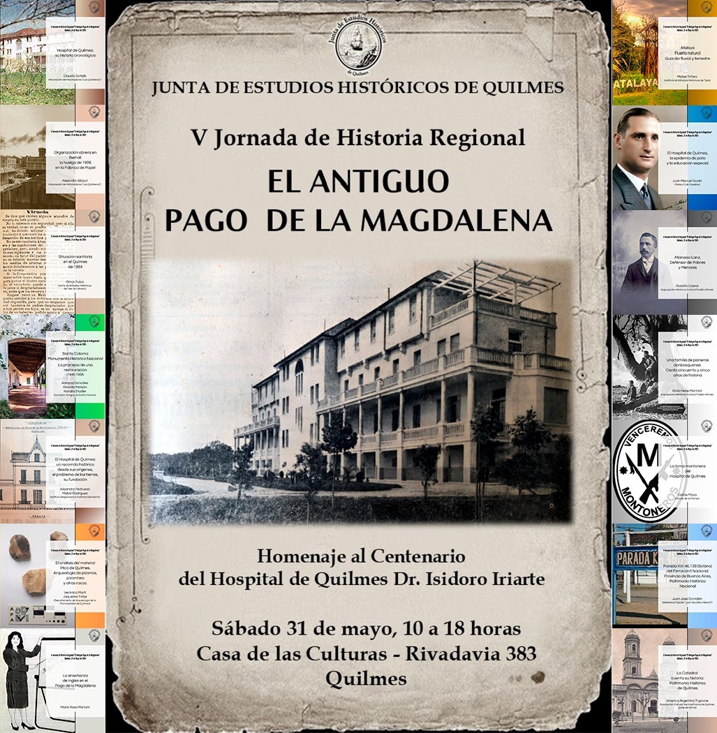 La V Jornada de Historia Regional tendrá lugar este sábado 31 de mayo, entre las 10 y las 17, en la Casa de las Culturas (Rivadavia 383, casi Sarmiento), informó la Junta de Estudios Históricos de Quilmes.