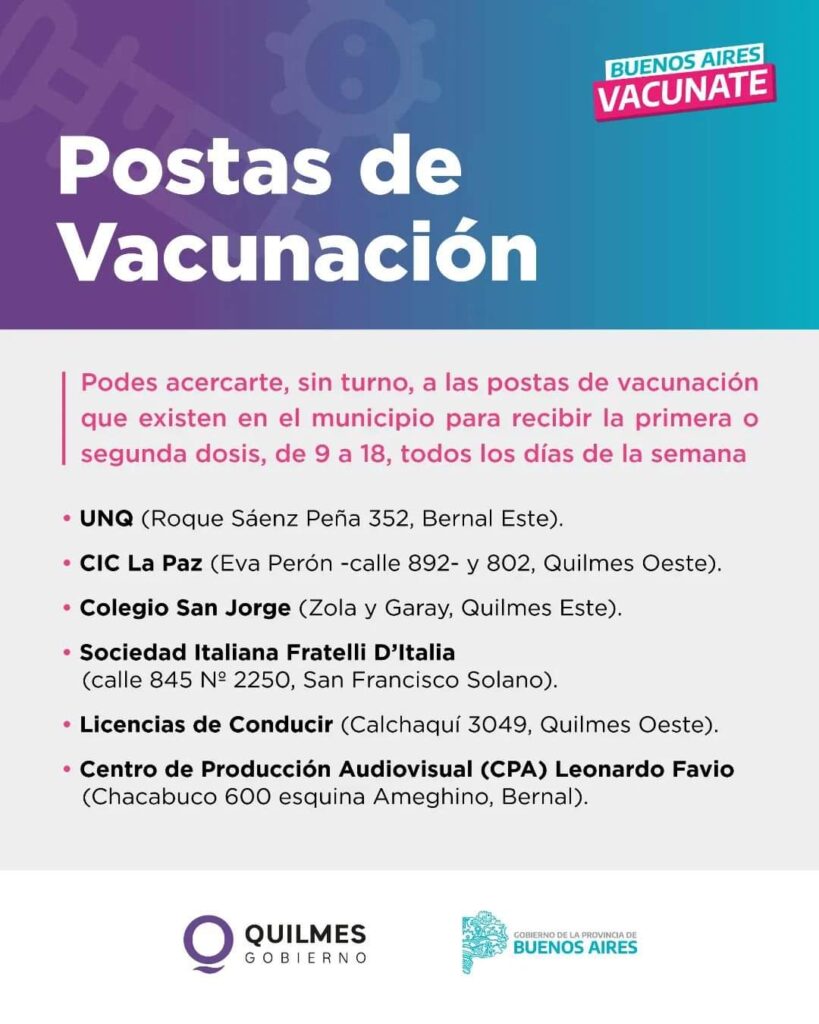 💉 *POSTAS DE VACUNACION QUILMES* 💉 _(Actualizado Enero 2022)_