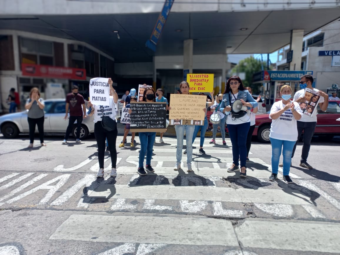 Reclaman por la libertad. Los acusados son jóvenes, sentenciados a penas de entre 15 y 16 años de prisión en diciembre pasado. Las críticas de los familiares recayeron en el juez Diego Agüero como los magistrados del TOC 1, Florencia Butierrez, Jorge Moya Panisello y Santiago Zurzolo Suárez.