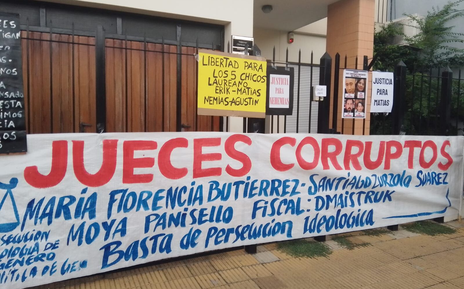 Los familiares de E.K, E.M, M.L, L.C y N.F se movilizaron hasta el Tribunal Oral en lo Criminal 1 de Varela para mostrar su disconformidad con las condenas dictadas por los jueces María Florencia Butiérrez, Santiago Zurzolo Suárez y Jorge Moya Panisello en un caso que estremeció al país por su brutalidad.