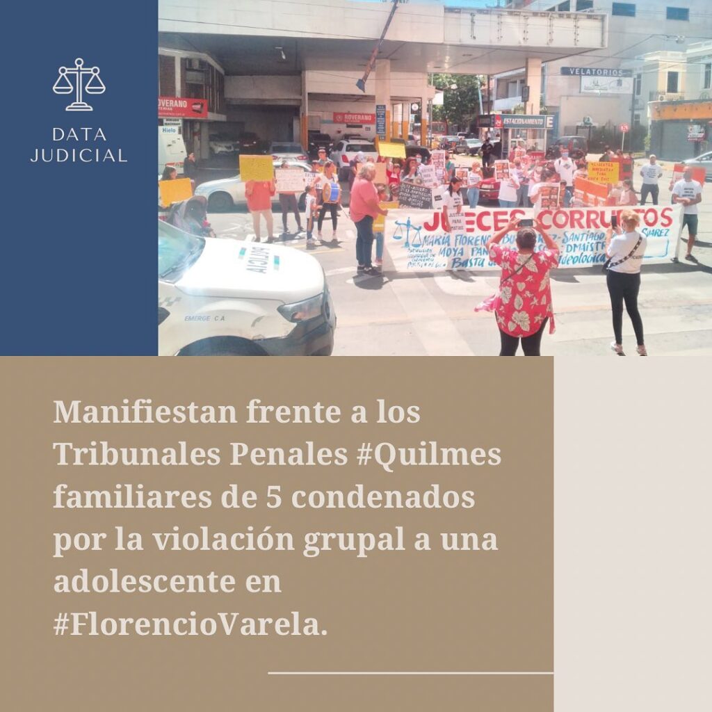 Un grupo de personas se manifestaron frente a los Tribunales Penales de Quilmes. Son familiares de cinco condenados cuyos ADN habían dado negativo en la instrucción de los hechos por violación grupal a una adolescente en Varela.