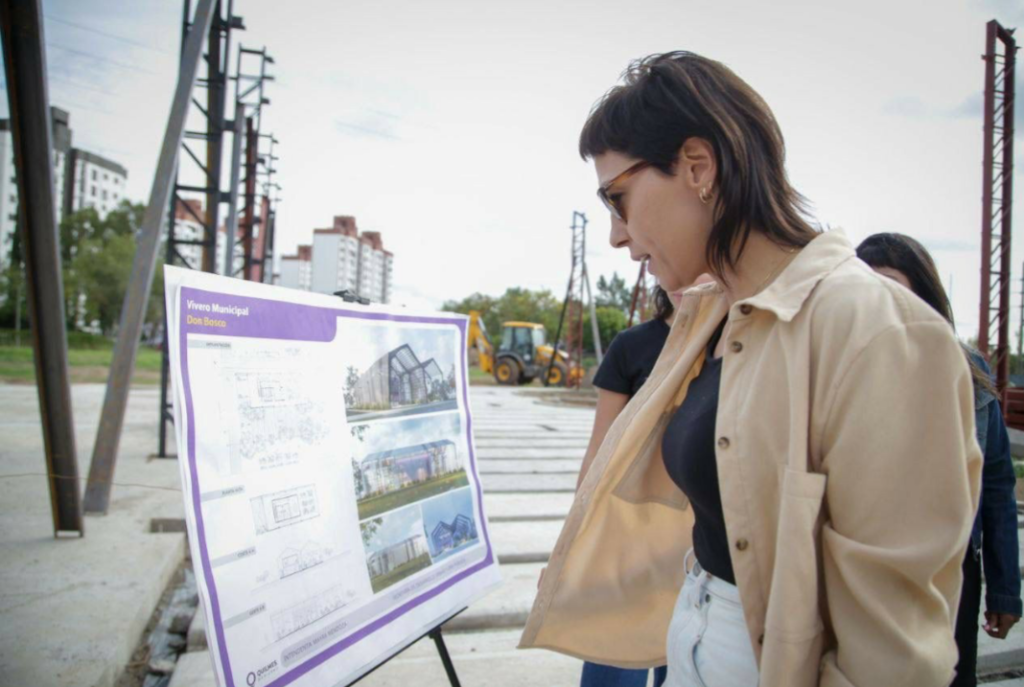 La intendente de Quilmes recorrió este miércoles los avances en la construcción del nuevo Vivero Municipal, ubicado en Agustín Bardi entre Carabelas y Dr. Illia, en Don Bosco, frente al Parque Lineal.