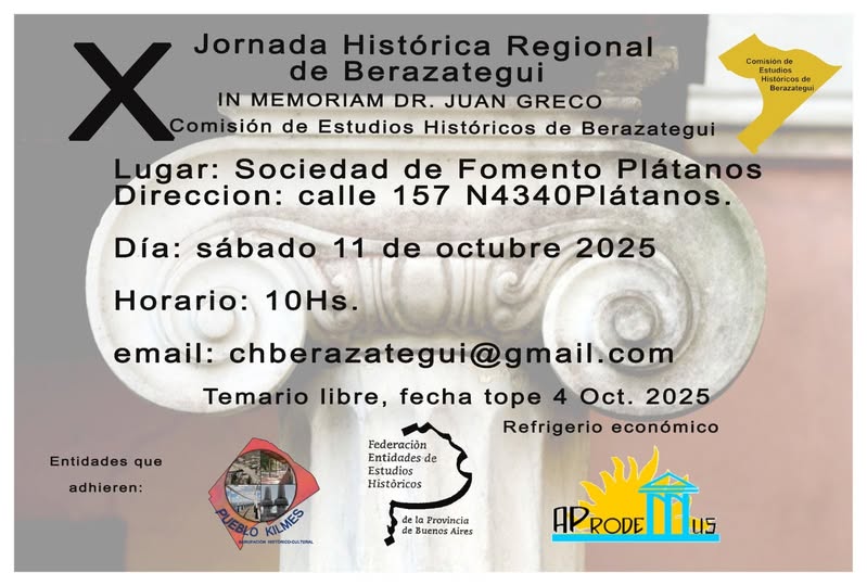 (CIB) Concluyó la jornada organizada por Rodolfo Cabral (ex director de Museos en Quilmes) para la Comisión de Estudios Históricos de Berazategui con invitados de varios distritos en la Sociedad de Fomento Plátanos, este sábado.