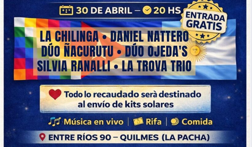 Ver más PONEN EN VALOR EL CEMENTERIO¡Ser solidarios es también en defensa propia, Cuba no está sola!🇦🇷🇦🇷🇨🇺🇨🇺 📅 Jueves 30 de abril⏰ 20 hs📍 Entre Ríos 90 – Quilmes (La Pacha)…