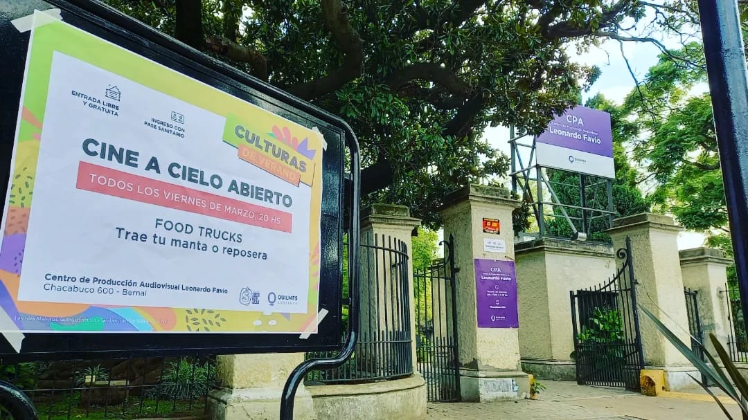 - A las 20, se podrá presenciar el ciclo «Cine a Cielo Abierto», en el Centro de Producción Audiovisual (CPA) Leonardo Favio (Chacabuco al 600, de Bernal Centro), que además cuenta con foodtrucks. Recordá llevar tu manta o reposera.