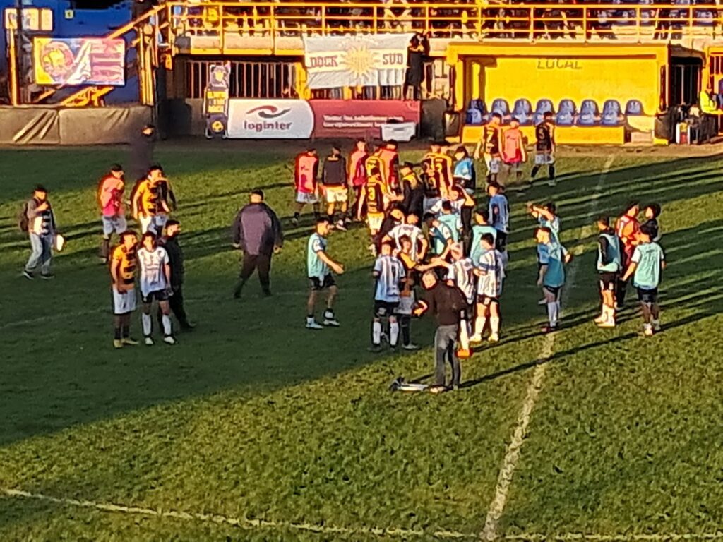 El primer tiempo finalizó con la gente del Docke recaliente: pararon el partido al subirse al alambre durante tres minutos.
