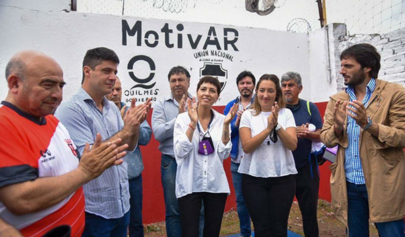 La titular de la Unión Nacional de Clubes de Barrio (UNCB), Marina Lesci, junto a la Jefa comunal Mayra Mendoza y el presidente de la…