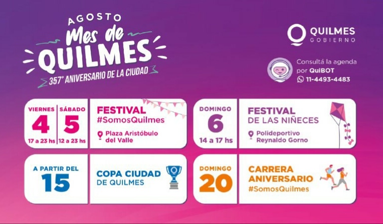 El Municipio de Quilmes informa que durante agosto se llevará adelante el «Mes de Quilmes» con motivo del 357º aniversario de la ciudad, que se…