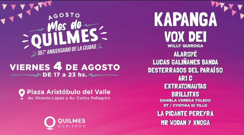 El Municipio informa que durante el viernes 4 y el sábado 5 de agosto, se desarrollará el festival «Mes de Quilmes», por el 357º aniversario…