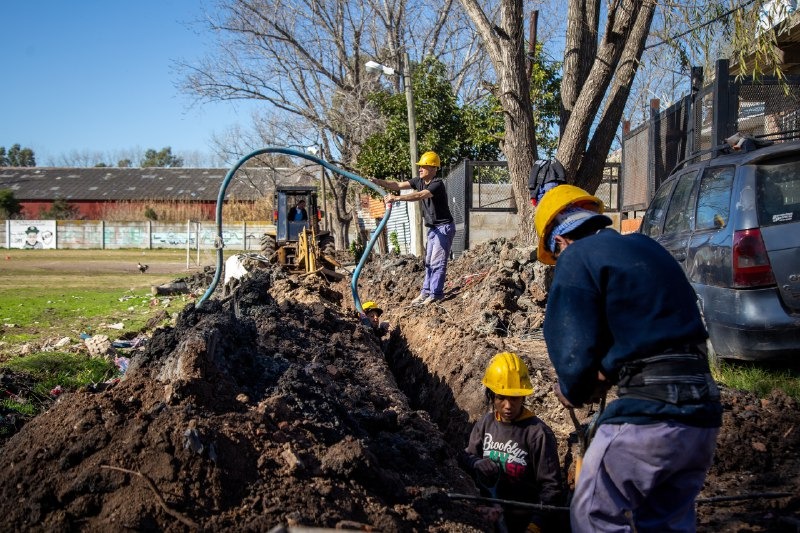 Las obras se realizan en conjunto con la empresa AySA, que las financia, y la coordinación y los trabajos son llevados adelante por la secretaría de Desarrollo Urbano y Obra Pública local, a través de cooperativas de trabajo.