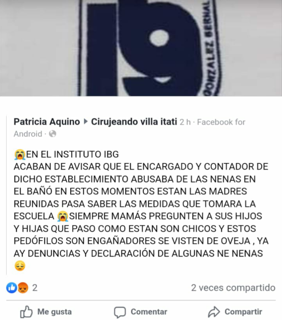 El encargado de los asuntos contables del Instituto Benito González está en la mira de la comunidad educativa de dicha escuela por posible abuso sexual contra una o más alumnas.