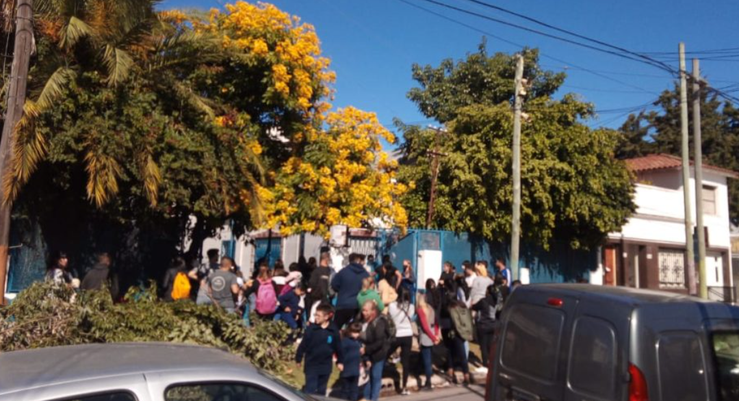 Una decena de patrulleros acudieron esta tarde al lugar, ubicado en las calles Misiones y Viejo Bueno, de Bernal Oeste, a brindar seguridad, ya que padres muy alterados se convocaron para pedir explicaciones a las autoridades