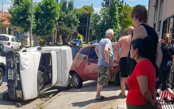 En un incidente ocurrido hoy en la intersección de Hernández y Alvear en Quilmes, dos vehículos colisionaron, por lo que uno terminó subido a la vereda.