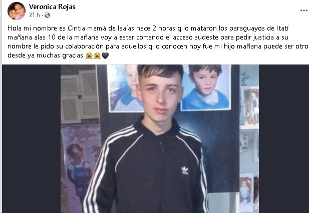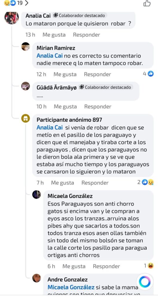 En las redes de la tía del asesinado, puede leerse el intercambio de posteos que señalan a unos paraguayos de la villa Itatí: