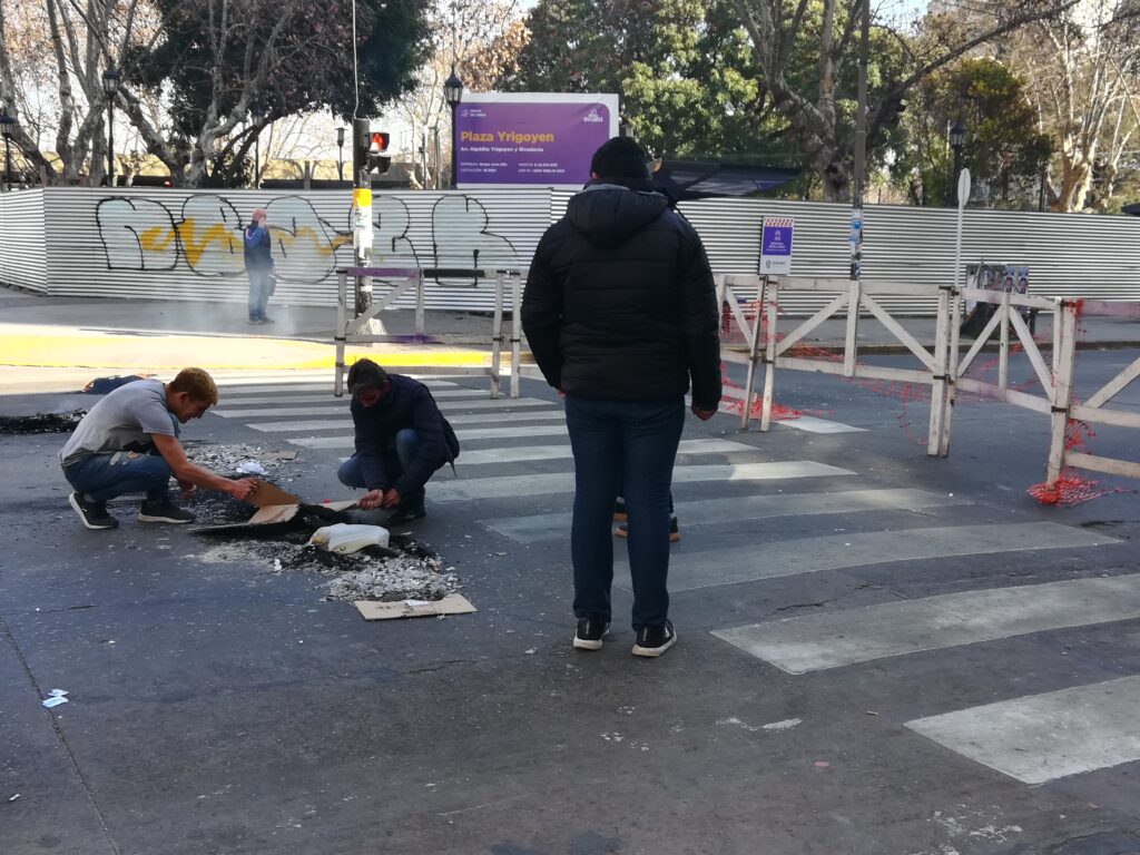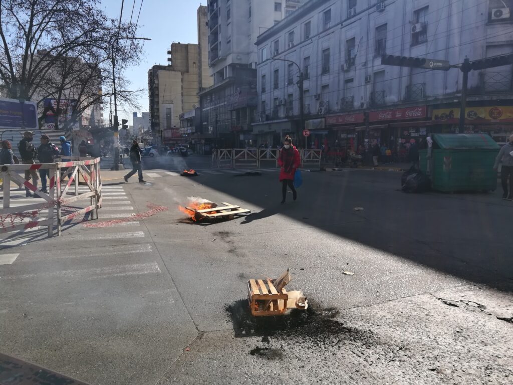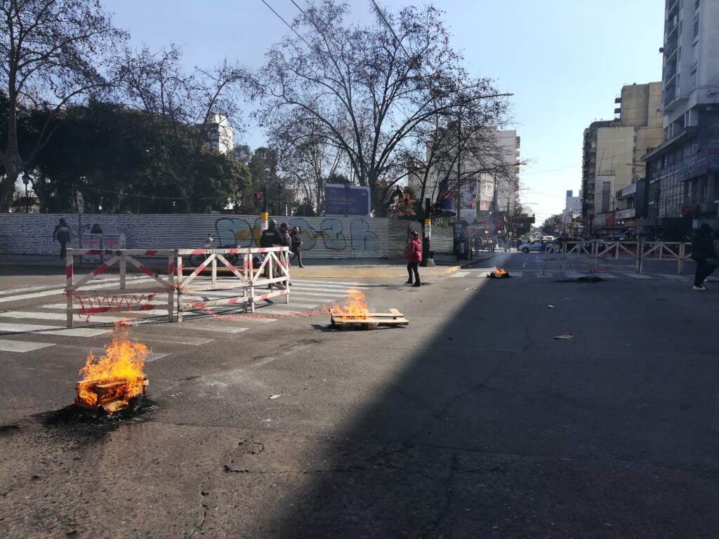 Un reducido grupo de personas, este mediodía, corta las calles en la estación de Quilmes.