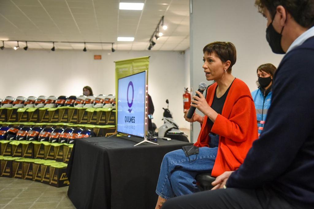 La Jefa comunal de Quilmes, Mayra Mendoza, y el director ejecutivo de la Agencia Nacional de Seguridad Vial (ANSV), Pablo Martínez Carignano, encabezaron una jornada de trabajo en el distrito que incluyó la entrega de 200 cascos homologados de alta visibilidad y 200 chalecos para motociclistas, una capacitación en la conducción segura de motos, y la firma de un convenio para articular con la Línea 149, que es la red de asistencia federal y gratuita para las víctimas de siniestros viales y sus familias.