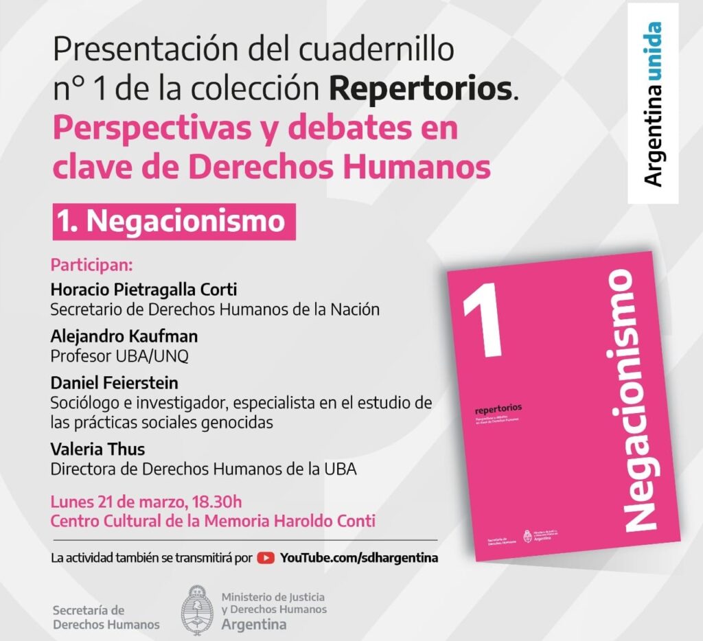 El profesor Alejandro Kaufman, de la Universidad de Quilmes (UNQ) participará de un panel de debate para la presentación del primer cuadernillo de una colección sobre Perspectivas en clave de Derechos Humanos. Participará de la charla el secretario de DDHH de la Nación, Horacio Pietragalla. Podrá seguirse por el canal de YouTube de la Secretaría.